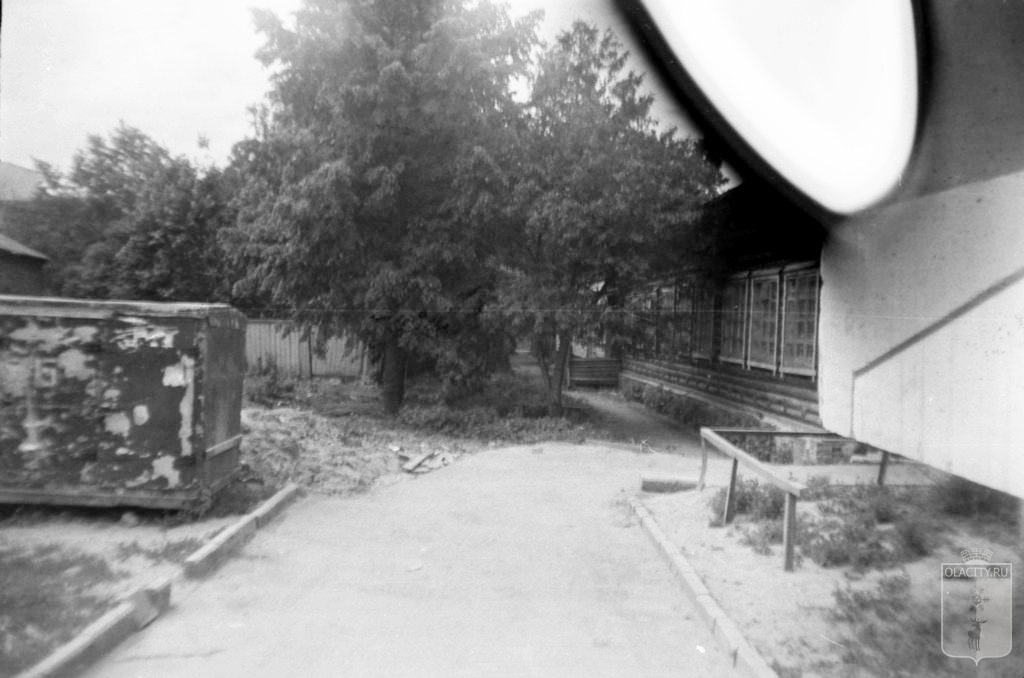 Как это было [всего: 1 Комментариев на эту работу] Чтобы конкретизировать информацию в комментарии о пространстве между зданиями,"включим ZOOM" и "приблизим"интересующий нас объект. Этот вид почти повторяет знакомый нам id=2886, но снят с несколько другого расстояния- потому и в кадр вошла плита лоджии первого этажа торца дома Карла Маркса,36. olacity.ru olacity.ru Ну, а пятно дополнительно напоминает нам о материальности носителя информации (плёнка ТАСМА-65) и криворукости фотографа (шутка).