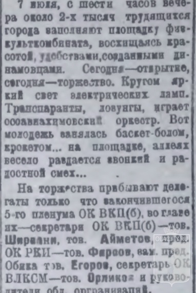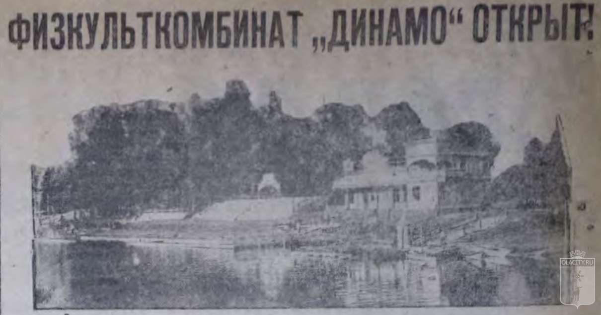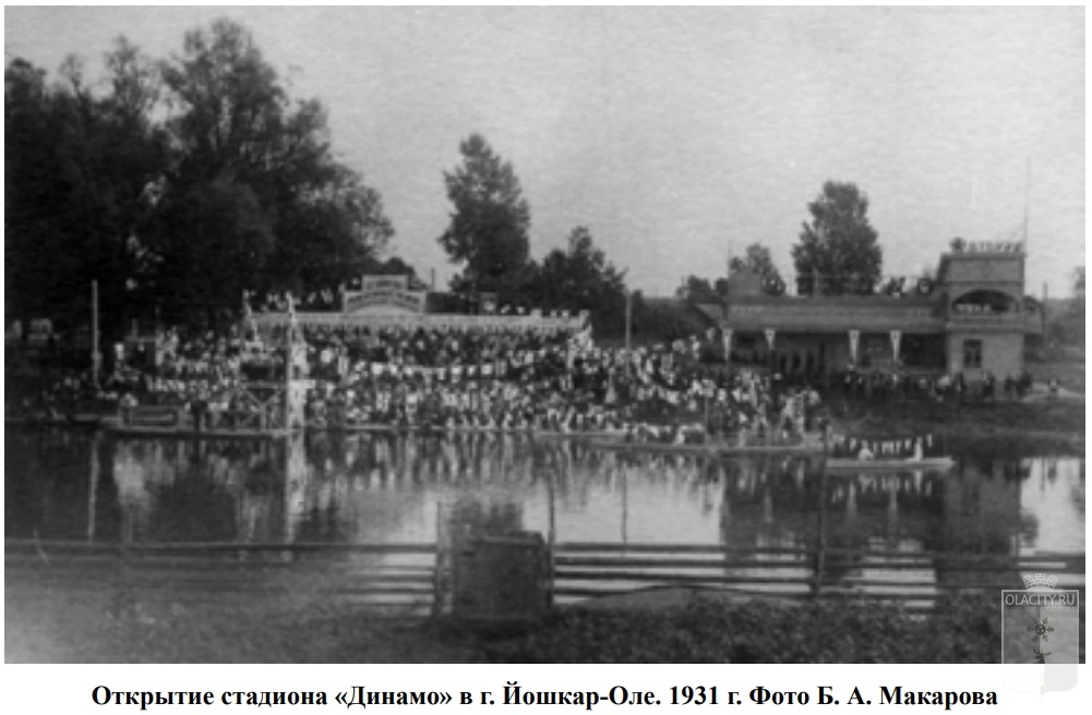 Водная станция «Динамо», появившаяся вместе с одноимённым стадионом на левом берегу М. Кокшаги на окраине Красноармейской слободки, вблизи тракта следующего в д. Княжна (с 1967 г. – д. Данилово), в 1930-х годах (id=1828). Как можно видеть на фото станция была неплохо оборудована: имелось несколько лодочных причалов, три плавательные дорожки со стартовыми тубмами, вышка для прыжков в воду. Сам же стадион «Динамо», часть которого видна у правого края снимка, ещё не оборудован трибунами, кольцевая беговая дорожка вынесена за пределы огороженного поля стадиона. Справа, на берегу, видна баскетбольная площадка.