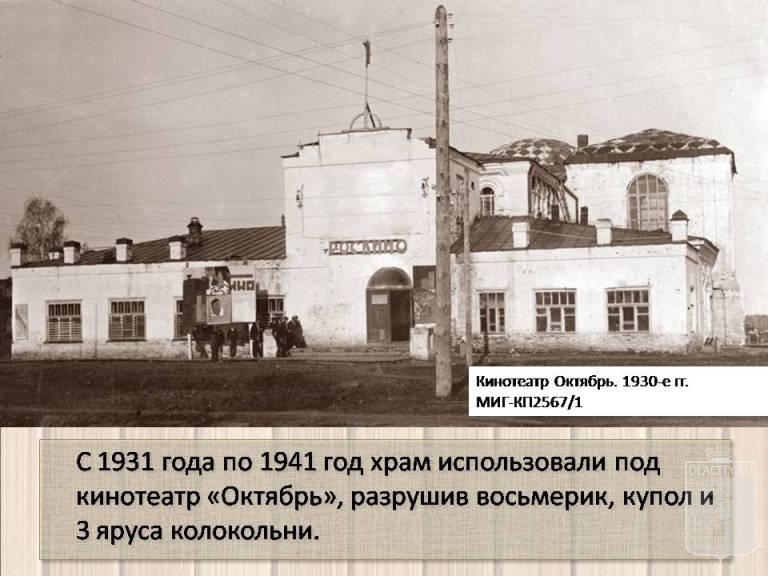 Мы знаем, что в 1934 году в здании собора был открыт кинотеатр "Октябрь", но помимо него здесь же были и другие учреждения культурного досуга, организованные Облсофпрофом в 1929 году, которому и было передано здание для культпросветработы. Помимо кинотеатра здесь находились: детский клуб - предшественник Дома пионеров; изостудия и другие "кружки по интересам"; большое фойе кинотеатра использовалось как актовый зал. Согласитесь, использование здания было более обширным, чем просто кинотеатр и правильнее будет назвать это учреждение клубом для досуга рабочих или рабочим клубом.