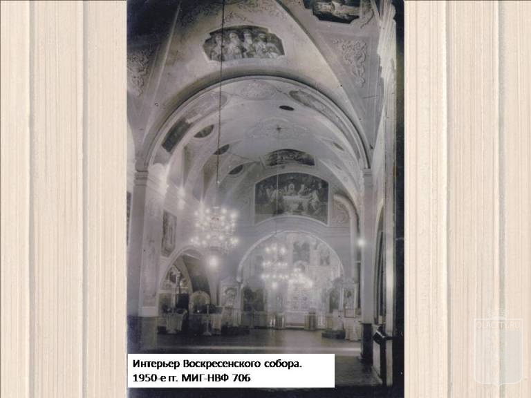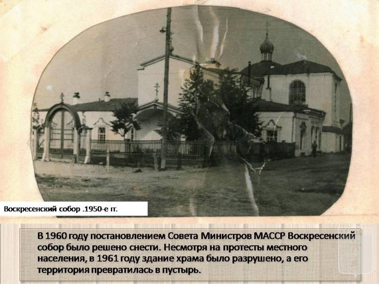 Замечательное фото! И редкое. Замечательное тем, что такого ракурса съёмки бывшего Воскресенского храма я ещё не видел - бывший собор снят от реки, со стороны апсиды. А редкое потому, что снимок из частной коллекции и имеет вполне определённую дату - 12 апреля 1937 года.
